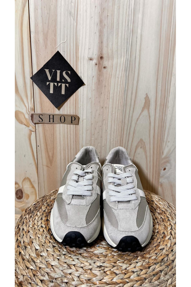 Zapatillas de mujer tipo deportivas. Efecto serraje crudo, efecto napa beige.