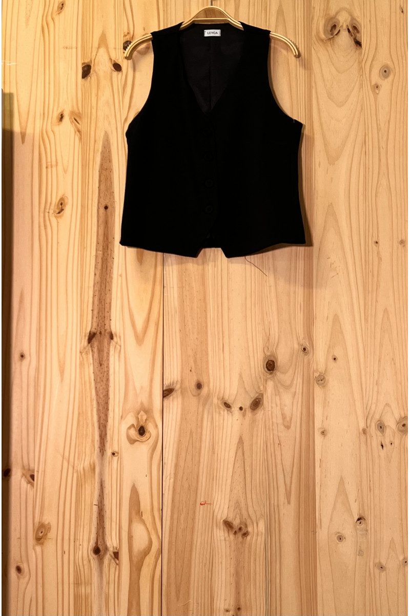 Chaleco género punto roma, forrado disponible en dos colores negro y blanco.