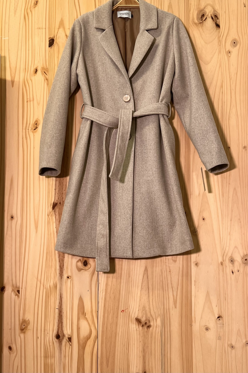 Abrigo paño forrado, composición 100% poliéster, fabricado en España.